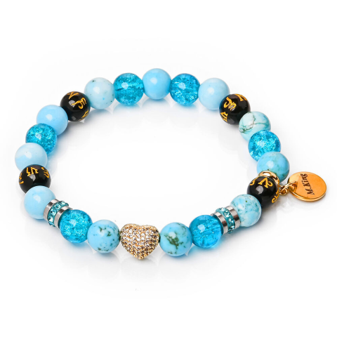1 kép Buddha Tranquil – Howlit és hegyikristály ásvány karkötő Szív dísszel vagy anélkül, dobozban