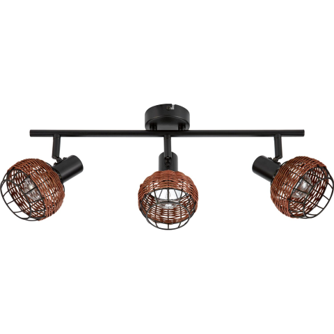 A Buia termékcsalád 3 spotos lámpájával célzott megvilágítást hozhat létre a szobában. Használhatja a nappaliban, az előszobában és az étkezőben. Gyönyörű barna színű rattan külsejével a lámpa természetes hangulatot kölcsönöz a berendezésnek. Számos belsőépítészeti stílussal kombinálható. A spot rattanból, ill. tartós és masszív, fekete színű vasból készült. A kellemes megvilágításért A helyiségek megvilágításához a 3 izzós spothoz három