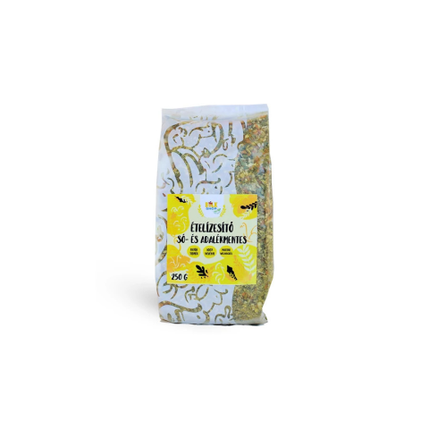 Só- és glutamátmentes ételízesítő, ízfokozót nem tartalmaz. Összetevők sárgarépa dara, vöröshagyma dara, burgonya dara, póréhagyma dara, kukoricadara, paszternák dara, kristálycukor, őrölt szegfűbors, őrölt feketebors, kurkuma. Ízfokozót nem tartalmaz