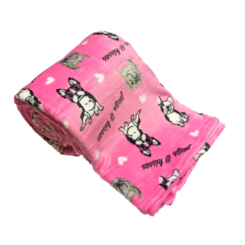 1 kép Bulldog mintás wellsoft pléd, 200 x 230 cm, rózsaszín