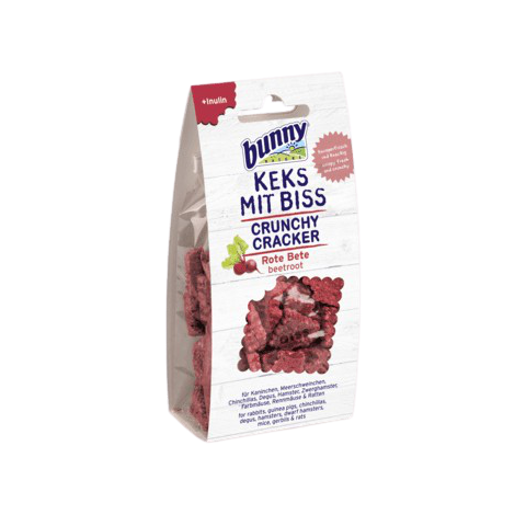Bunny Nature Crunchy Cracker céklás 50 gr A céklás keksznek köszönhetően házi kedvenced ismét a természetben érezheti magát. Összetevők: Tönkölybúza, zabkorpa, rizs, gyümölcspogácsa, répa (7%), zabhéj korpa, lignocellulóz, cékla, kalcium-karbonát, cikóriapor. (0,5% inulin) Ajánlott fogyasztás: 1-2 db keksz naponta - az állatok méretétől és súlyától függően. Természetesen mindig legyen friss víz, jó minőségű széna és táp is nyuszid előtt. A Bunny Na