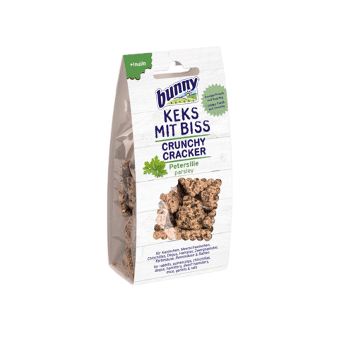Bunny Nature Crunchy Cracker petrezselymes 50 gr Mi az, ami enyhén fűszeres ízű és ropogós? Nem más mint a petrezselymes keksz. Ez a legnagyobb változatosság kedvencének etetőtálkájában. Összetevők: Tönkölybúza, zabkorpa, rizs, petrezselyem (10%), gyümölcspogácsa, zabhéj korpa, lignocellulóz, kalcium-karbonát, cikóriapor. (0,5% inulin) Ajánlott fogyasztás: 1-2 db keksz naponta - az állatok méretétől és súlyától függően. Természetesen mindig legyen friss ví