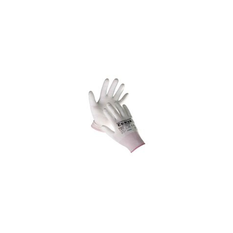 Tenyéren mártott kesztyű kopásálló poliuretán bevonattal Kötött, varratmentes poliészter kesztyű vékony poliuretán bevonattal a tenyerén és az ujjakon, rugalmas mandzsettával Kiváló fogásbiztonság, ideális védőeszköz könnyű szerelési munkáknál Minimáli