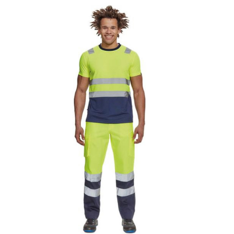 CERVA BURGOS jól láthatósági munkásnadrág Férfi jól láthatósági munkanadrág 7 cm széles fényvisszavető csíkokkal 2 oldalsó zseb + 1 érmezseb 2 oldalzseb 2 hátsó zseb Rugalmas oldalsó betétek a derékon Meghosszabbítható szárhossz