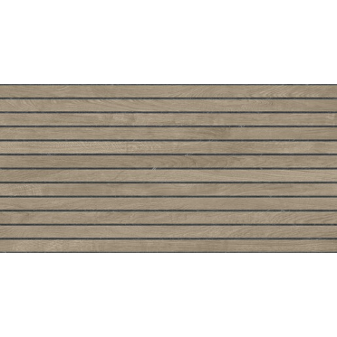 Újra hitelesített. Fekete és fa utánzatú, 60x120 cm méretű, 8 mm vastagságú, dombornyomott felületű csempe. Kizárólag belső használatra alkalmas.