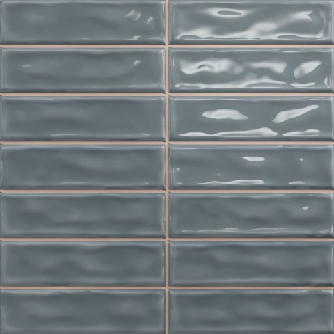 Csempe kék köd színben és 7,8 mm vastagságban, fényes felülettel. Csak belső használatra alkalmas. Ez egy 2,5x10-es mozaik utánzata 20x20-as formátumban.