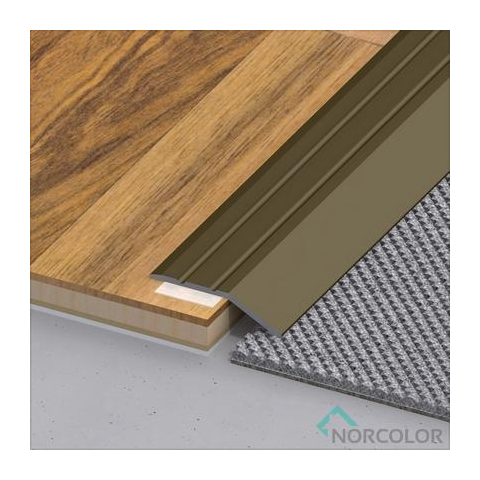 Öntapadós burkolatváltó profil, mely 8 mm szintkülönbségű burkolatok közötti dilatációs hézag takarására alkalmas. Erős - maximális tapadását úgy érhetjük el , ha lerakása előtt a felületet por - szennyeződés mentesítjük.