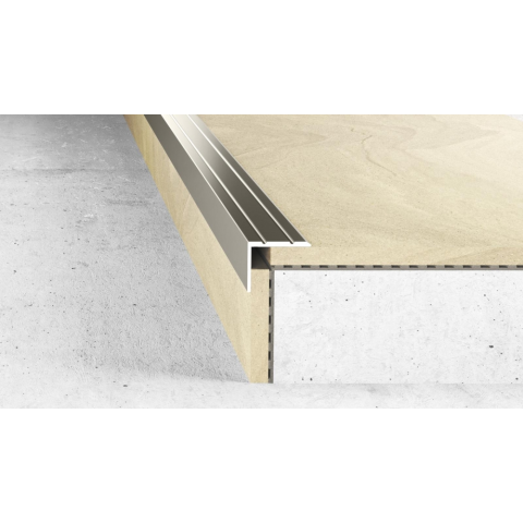 Eloxált felületű,L - alakú ,utólagosan beépíthető öntapadós lépcső profil. Erős - maximális tapadását úgy érhetjük el , ha lerakása előtt a felületet por - szennyeződés mentesítjük .