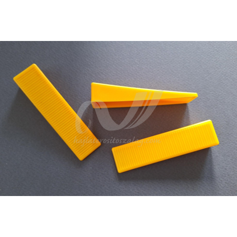Burkolólapszintező ék sárga színben. A szintező lapkák precíz rögzítésére alkalmas ék 3-12 mm-ig. Többször felhasználható szintezéshez.