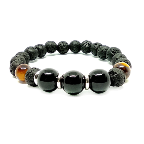 1 kép Burning Black Lava – Ónix achát, lávakő és tigrisszem ásvány karkötő dobozban