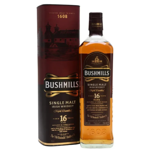 A 16 éves Bushmills a 10 éves puha és sima felépítésére épít, és nagyon szép gyümölcsös karaktereket ad hozzá. A whiskyt kezdetben külön öregítik 15 évig, mind a bourbon, mind a sherry hordóban, majd ezeket egy kikötőfába vitték össze körülbelül egy év ex
