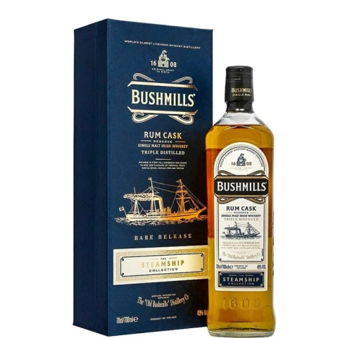 A Bushmills Steamship Rum Cask Reserve a híres Steamship Collection sorozat része, amelyet a Bushmills lepárló történelmi tengeri utazásai ihlettek. Ez a kiadás karibi rumoshordókban érlelt single malt whisky, amely különleges, édeskés és f