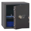 bútortrezor elektronikus zárral • minőségi trezor dokumentumoknak, értéktárgyaknak• 2,5 mm-es egyfalú trezor test, erős acéllemezből• 40 mm vastag duplafalú ajtó, 3 mm-es acél borítással• 90 fokos ajtónyitás erős jobboldali zsanérokkal• egyirányú (ZSL