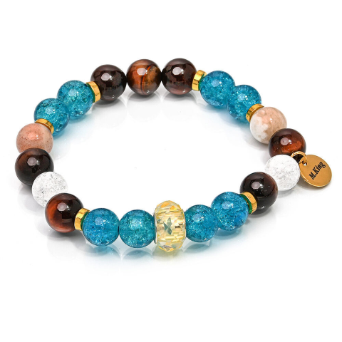 1 kép Butterfly in the Wind – Napkő, hegyikristály és tigrisszem ásvány karkötő dobozban