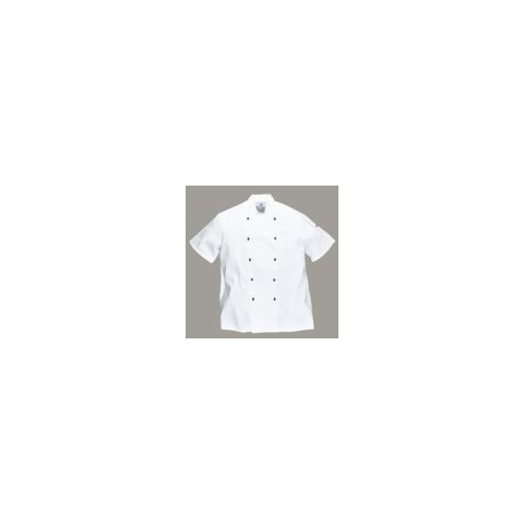 Séfkabát fehér rövidujjú, fekete gombokkal cikkszáma: C734 Meleg munkakörnyezetre terveztük új, rövidujjú séfkabát modellünket. Klasszikus szabás, magas minőségű, könnyen kezelhető alapanyag. Ujján zseb található, gombokkal záródó séfkabát. Kingsmill 1