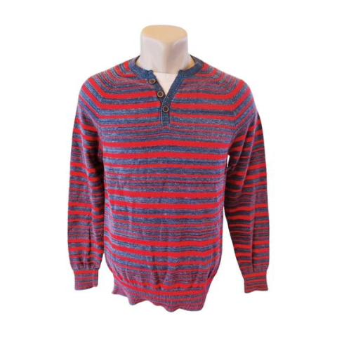 1 kép C&A szürke-piros csíkos férfi pulóver (méret: M)
