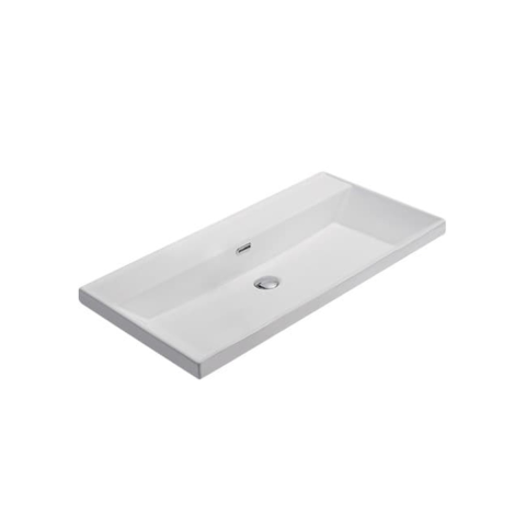 Nábytkové umyvadlo v matné bílé barvě s otvorem pro baterii uprostřed o šířce 81 cm a hloubce 46,5 cm. Balení bez sifonu a baterie.
