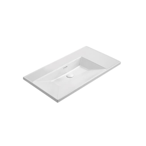 Nábytkové umyvadlo v bílé matné barvě s otvorem pro baterii uprostřed a odkládací plochou vpravo. Šířka umyvadla 81 cm a hloubka 46 cm. Balení bez sifonu a baterie.