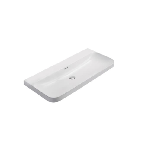 Nábytkové umyvadlo v bílé matné barvě s otvorem pro baterii uprostřed o šířce 100,6 cm a hloubce 46,3 cm. Balení bez sifonu a baterie.
