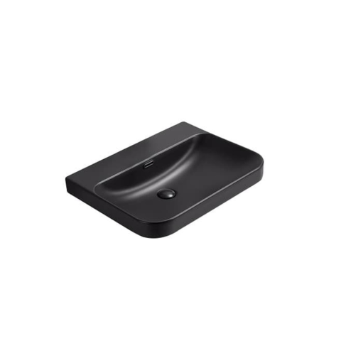 Nábytkové umyvadlo v černé matné barvě s otvorem pro baterii uprostřed o šířce 60,5 cm a hloubce 46,3 cm. Balení bez sifonu a baterie.