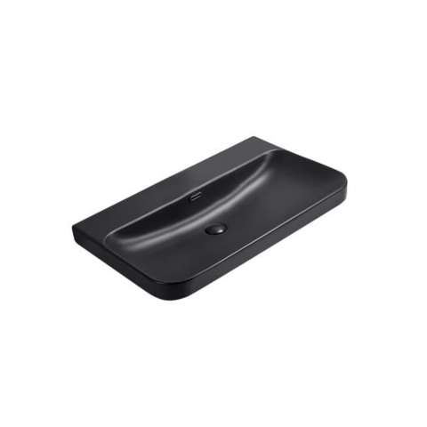 Nábytkové umyvadlo v černé barvě s otvorem pro baterii uprostřed o šířce 80,8 cm a hloubce 46,3 cm. Balení bez sifonu a baterie.