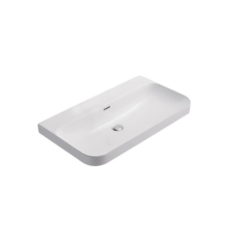 Nábytkové umyvadlo v bílé matné barvě s otvorem pro baterii uprostřed o šířce 80,8 cm a hloubce 46,3 cm. Balení bez sifonu a baterie.