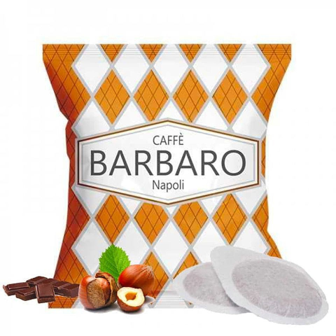 Kiváló minőségű Caffé Barbaro mogyorós-csokis ízesítésű ESE Pod kávépárna. Testes, sűrű és krémes nápolyi kávé kellemes mogyorós csokis aromával.Egy különleges ízélmény, kávéházi minőség otthon kedvező áron