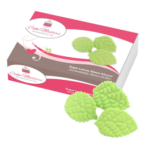 Ismerd meg a Cake-Masters cukorból készített kis leveleit, melyek segítségével igazán kedves és elragadó tortákat és süteményeket készíthetsz. A dobozban 15 darab – 30 mm-es - cukor levelet találsz, melyekkel díszíthetsz tortákat, süteményeket, de feldobh