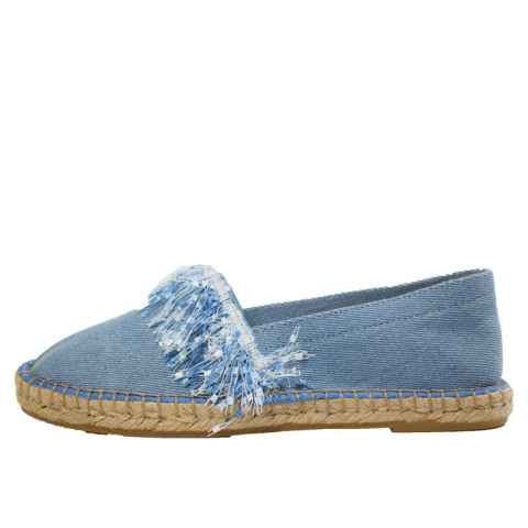 Calcado 2310 14 bebújós női félcipő Divatos, kényelmes, bebújós női félcipő. Modell: Calcado 2310 14 Szín: jeans / farmerkék Felsőrész: textil Bélés: bőr - textil Kaptafaszélesség: G - kényelmi normál bőség Sarokmagasság: 2 cm Tavaszi -