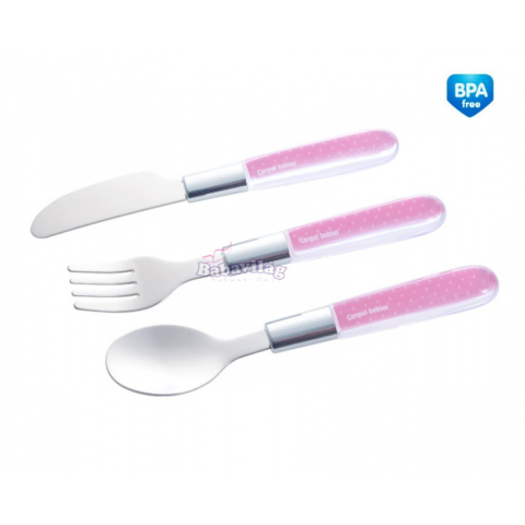 1 kép Canpol 3 Db-Os Fém Evőeszköz Készlet - rózsaszín