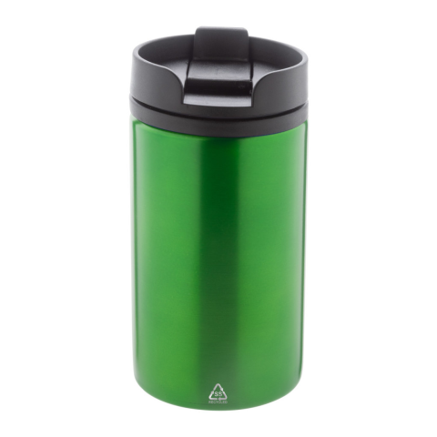 Duplafalú, újrahasznosított rozsdamentes acélból készült hőszigetelt thermo pohár, PP műanyag belsővel és ivófedéllel. 250 ml.