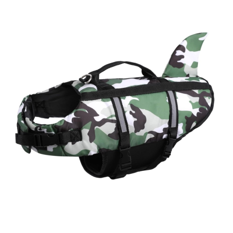 Cápauszonyos terepszínű kisállat mentő& úszómellény -Zöld - L