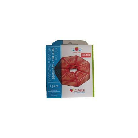 Care Essentials gyógyszertartó, kerek Care Essentials gyógyszertartó, kerek A kerek, egyhetes gyógyszertartó 7 rekeszből áll, kivehető részekkel. Száraz, hűvös helyen tárolja! Tisztítsa langyos vízzel! Tartsa távol a gyógyszert gyerekektől!