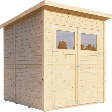A Carlsson Mollie-14 fából készült kerti ház 3,1 m2 alapterületével és 5,97 m3 térfogatával a kerti eszközök elhelyezésére ideális. Annak érdekében, hogy kényelmesen beléphessen, kétszárnyú ajtóval rendelkezik, amely kb. 131 cm széles és 165 cm magas. A széles bejáratnak köszönhetően nagyobb kerti gépek, például fűnyírók és hasonlók, is elhelyezhetők benne. Klasszikus megjelenésű szerszámtároló A kezeletlen felület megőrzi a természetes megjelenést