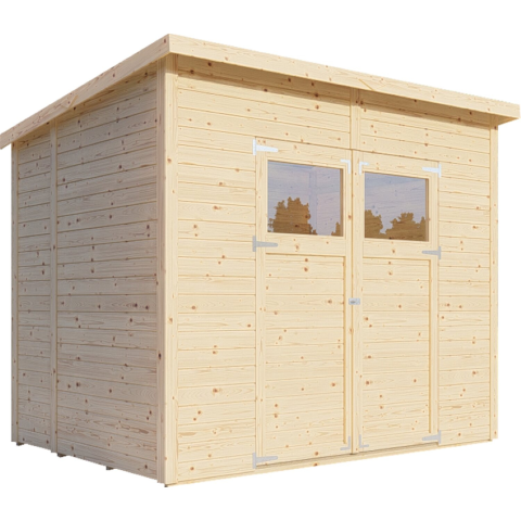 A Carlsson Mollie-14 fából készült kerti ház 4,3 m2 alapterületével és 8,1 m3 térfogatával a kerti eszközök elhelyezésére ideális. Annak érdekében, hogy kényelmesen beléphessen, kétszárnyú ajtóval rendelkezik, amely kb. 131 cm széles és 165 cm magas. A széles bejáratnak köszönhetően nagyobb kerti gépek, például fűnyírók és hasonlók, is elhelyezhetők benne. Klasszikus megjelenésű szerszámtároló A kezeletlen felület megőrzi a természetes megjelenést