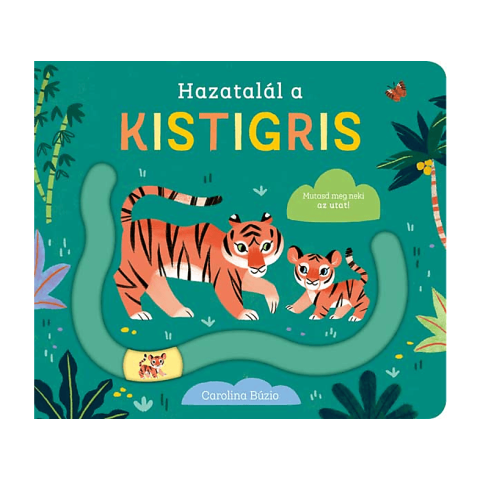 Vedd a pici kezedbe a könyvet, és a mozgatható csúszkával mutasd meg a hazavezető utat az állatkölyköknek a dzsungelben! Az ujjvezetővel a babák hazavezethetik a kistigrist, a kispapagájt, a kiskrokodilt és a kiselefántot a mamájukhoz. Míg a kisállatok hazaérnek, sok mindent megfigyelhettek a hazavezető úton.