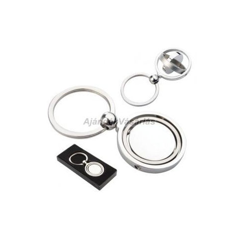 Fém, forgó belsejű kulcstartó. Fekete kartondobozban.