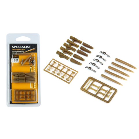 Ólomkapocs szett specialitás a Carp Ecademytől. Öt pontyozó szerelék elkészítéséhez szükséges készlet. A készlet tartalmaz biztonsági ólomkapcsokat, gyorskapcsokat az előkéhez, valamint hozzá való gubancgátló szilikoncsöveket. Továbbá öt különböző méretű