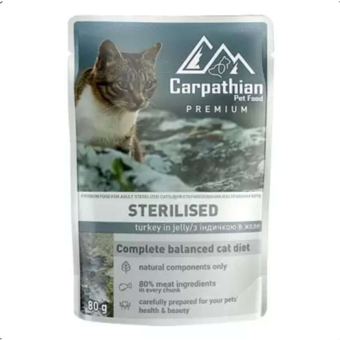 Teljes Carpathian Prémium Alutasak Steril Macskáknak Pulyka Szószban, 80G termékleírás