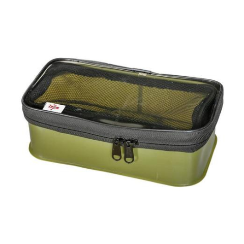 Könnyű vízhatlan EVA anyagból készült táska, melyre erős cipzár és átlátszó fedél került. A jól pakolható egybefüggő belső tér és a doboz teteje között szintén cipzárral rögzíthető háló található, mely megakadályozza a
