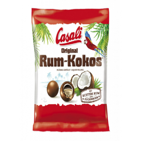 Casali Rum-Kokos alkohollal (10%) töltött tej (59%) és étcsokoládéval (9%) bevont drazsé 100g. Súly: 100g