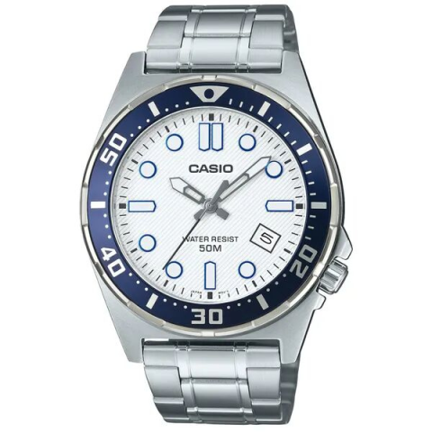 Casio MTD-135D-7A férfi karóra, rozsdamentes acélszíj, fehér számlap, WR50 karóra termékleírás