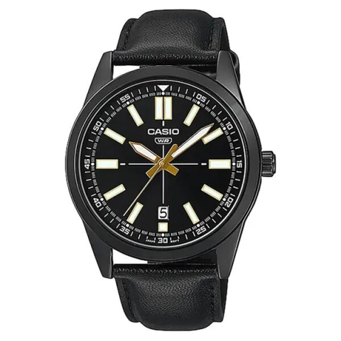 1 kép    Casio MTP-VD02BL-1E férfi karóra, fekete bőr szíj, dátumkijelző
