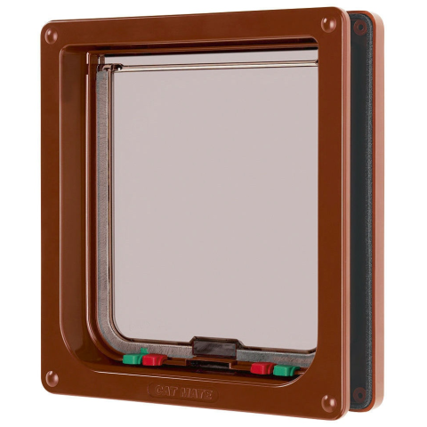 CatMate zárható macskaajtó XL, barna. Nagy macskáknak és kisebb kutyáknak (pl. yorkie, tacskó) tervezett, időjárásálló macskaajtó. Minden 50 mm-nél vékonyabb ajtóba szerelhető. Mágneses zárral és átlátszó lappal. CatMate DogMate XL zárható macskaajtó é