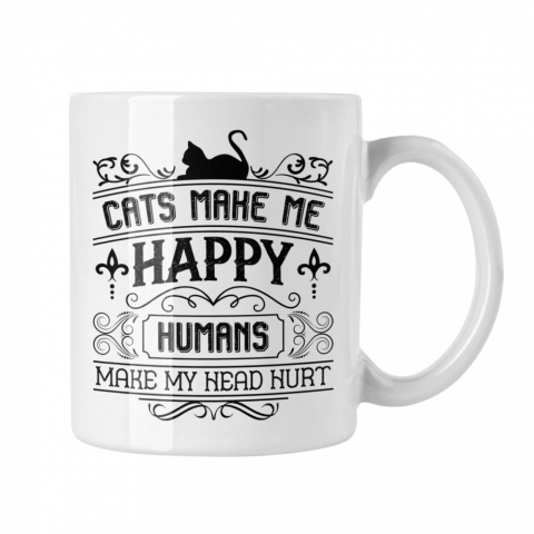 1 kép Cats make me happy humans make my head hurt - Fehér Bögre