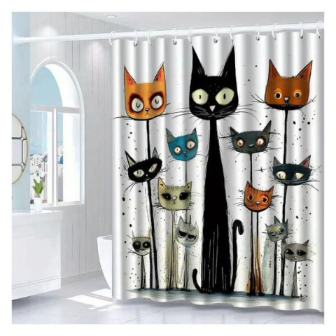 CATS poliészter zuhanyfüggöny RK640762Dobd fel fürdőszobádat ezzel a kreatív és bohókás macskás zuhanyfüggönnyel, amely vidám és modern hangulatot teremt! A különleges rajzolt macskaminták egyedi karaktert adnak a helyiségnek, miközben a függöny praktikus védelmet nyújt a víz ellen.Főbb jellemzők:Egyedi dizájn: Színes és humoros macskás grafikaVízálló anyag: Megakadályozza a víz kifröccsenésétTartós és könnyen tisztítható: Penészálló, gyorsan szára