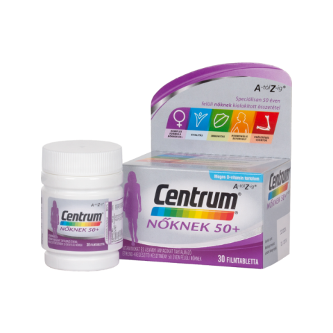 A Centrum Nőknek 50+ egy speciálisan 50 év feletti nők számára kifejlesztett étrend-kiegészítő, amely vitaminok és ásványi anyagok széles spektrumát tartalmazza. Támogatja a vitalitást, az immunrendszer működését, a hormonális egyensúlyt, valamint az egészséges csontok fenntartását