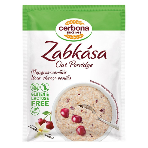 Induljon a nap gluténmentes Cerbona zabkásával! A meggyes-vaníliás zabkásánk különlegessége, hogy gluténmentes zabpehelyből készül tej hozzáadása nélkül, így bátran fogyaszthatják azok is, akik glutén-, tej-, illetve laktózérzékenyek, és a vegán életmódot
