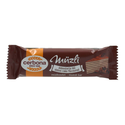 A Cerbona dobostorta ízű müzliszelete felidézi a híres magyar torta krémesen kakaós és omlós karamell ízeit. Értékes tápanyag összetételű, élelmi rostban gazdag, ezáltal jól beilleszthető az egészséges táplálkozásba. A dobostorta ízű müzliszeletet a h