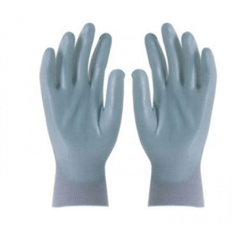 SZÜRKE PRECÍZIÓS POLIÉSZTER KESZTYÛ, PU MÁRTOTT TENYÉRREL_8SZÜRKE PRECÍZIÓS KESZTYÛ, PU MÁRTOTT TENYÉRREL: ? kötött, rugalmas, nagy szakítószilárdságú 100% poliészter szál ? tenyéren poliuretánnal mártott ? precíziós kesztyû gumírozott mandzsettával,